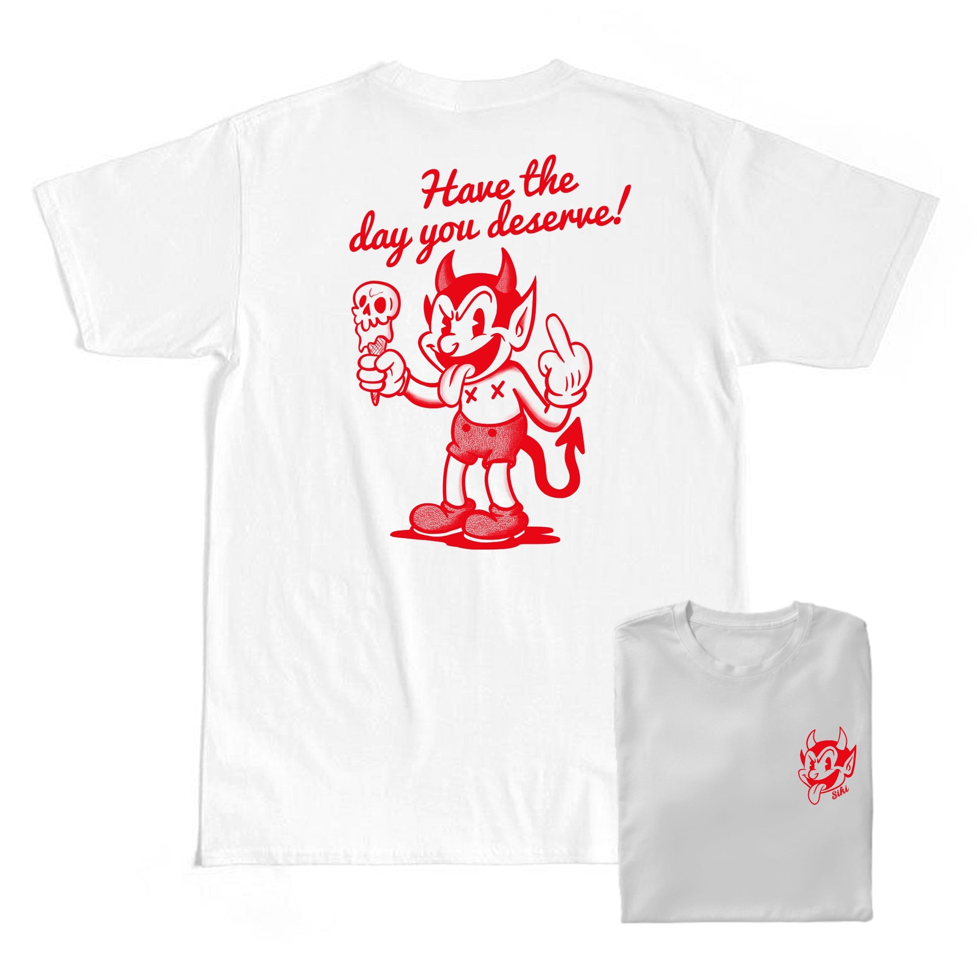 Un diablillo travieso, un helado y un gesto muy claro: esta camiseta no viene a complacer a nadie. Perfecta para quienes no se toman la vida tan en serio y prefieren decirlo con estilo.